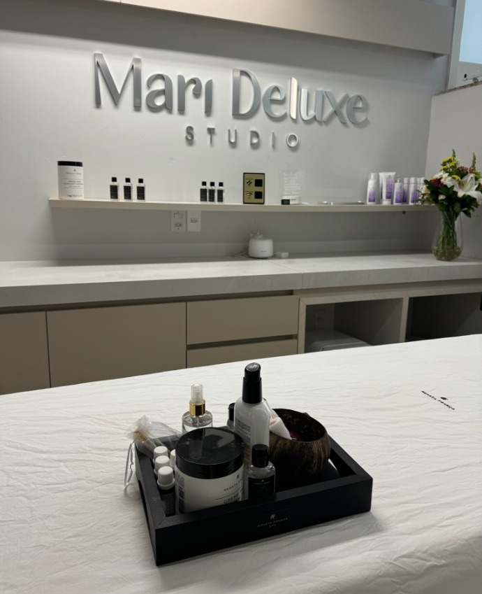 A Mari Deluxe Studio conta com espaços para protocolos de Massagens e Skincare, para tratamentos de cabelo, manicure, pedicure, sobrancelhas e maquiagem.
